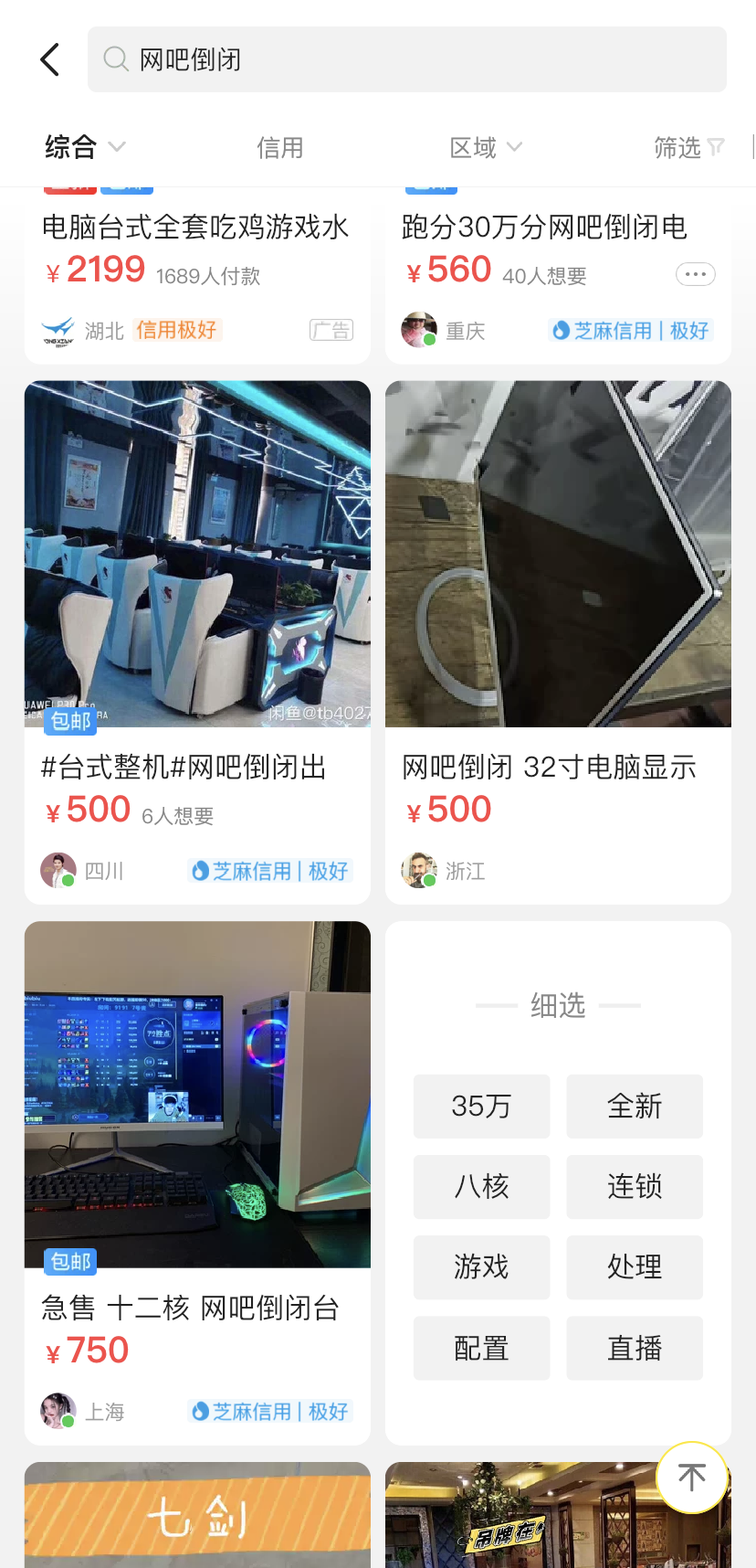 事实上,锌刻度在各种二手平台搜索“网吧倒闭”、“二手电脑”或“网吧转卖”等关键词,发现近日来有许多卖家均为倒闭网吧的老板,转卖的货物详情内大多标明“网吧倒闭,无奈转卖”等。