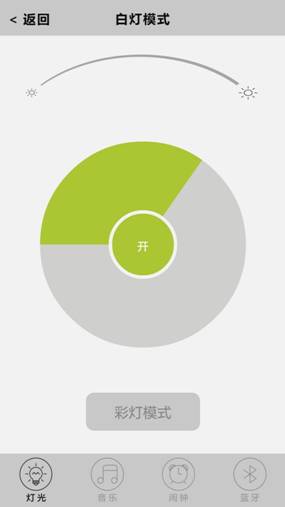 白灯模式下只能调节灯光亮度,颜色为彩灯模式下选择的颜色