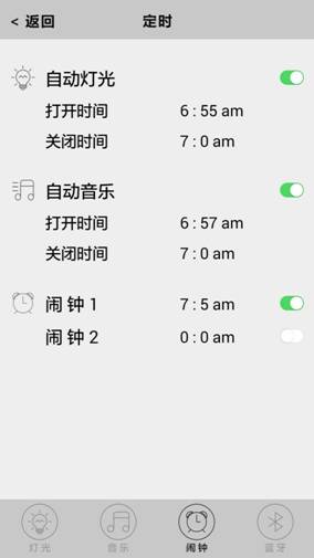 灯光、音乐和闹钟都能独立设置开启时间,灵活度比较高