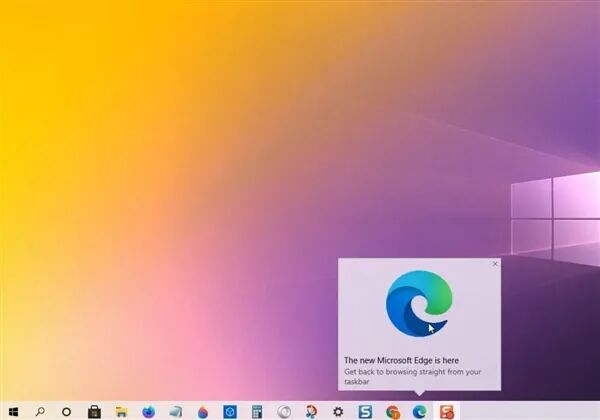 安装完毕下一次启动Windows 10时,系统会通过任务栏上的通知提示新的Edge已经安装完毕。