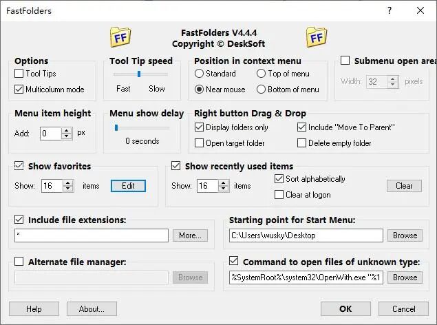 此外,还可以在Fast Folders中设置文件夹浏览的起始文件夹起始点(Starting Point for Start Menu),这样用户在浏览多级文件夹时,就可以快速返回起始文件夹了。