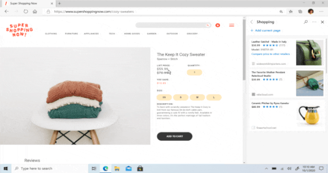 新版Edge:Windows 10 20H2 是首个默认安装基于 Chromium 的新版 Edge 的功能更新,同时Edge现新增比价工具。