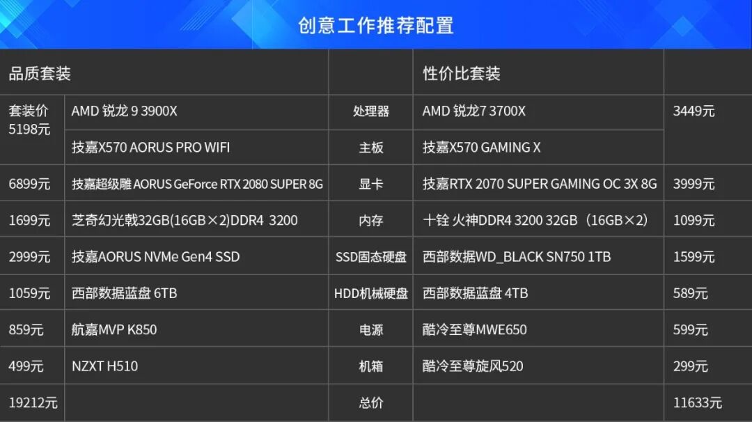 对于对效率/操作流畅度要求较高的专业创意工作者来说,配备一台8核16线程以上处理器,搭配NVIDIA RTX 20系列显卡和32GB以上内存,可以更好的满足在家设计的基础需要。在4K/6K视频剪辑、建筑图/结构图设计、中度3D渲染上,都有比较不错的表现。通常买到这个配置的笔记本,大多需要接近20000元的售价,而使用桌面平台,不仅在性能上更加强大,同时也能节省不少的预算。多线程处理器+高性能显卡+大内存+多磁盘,才能构建完整的工作环境,让设计师充分发挥自己的想象,带来满意的作品。