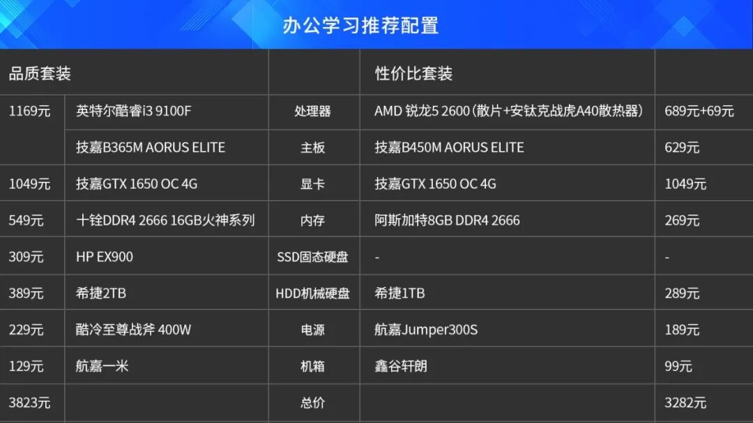 针对宅家办公的需求,我们在处理器方面选择英特尔酷睿i3 9100F这样的入门级处理器就能很好的满足需求,显卡方面搭配千元入门级的GTX1650,在工作之余,如果大家有《英雄联盟》《魔兽世界》《DOTA2》这样的轻量级游戏需求的话,也能得到很好的满足,让整机更加全能。针对有轻量化视频编辑和直播需求的老师来说,拥有更多线程数的AMD 锐龙5 2600可以更好的满足多任务环境的要求。
