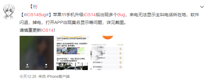 在见识过极为先进的动态图标之后,小编又网上冲浪了一番,发现iPhone用户升级系统后遇到的幺蛾子也一点不少。首先发热、耗电这种每个版本必出的玄学BUG就不提了。