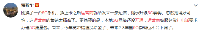 不少网友反映,最近经常会收到运营商客服的电话建议开通5G网络、升级5G套餐。