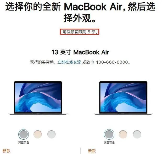 甚至新款的MacBookAir,Mac Mini,MacPro以及Pro Display XDR也开启了每人限购5台的限购模式。